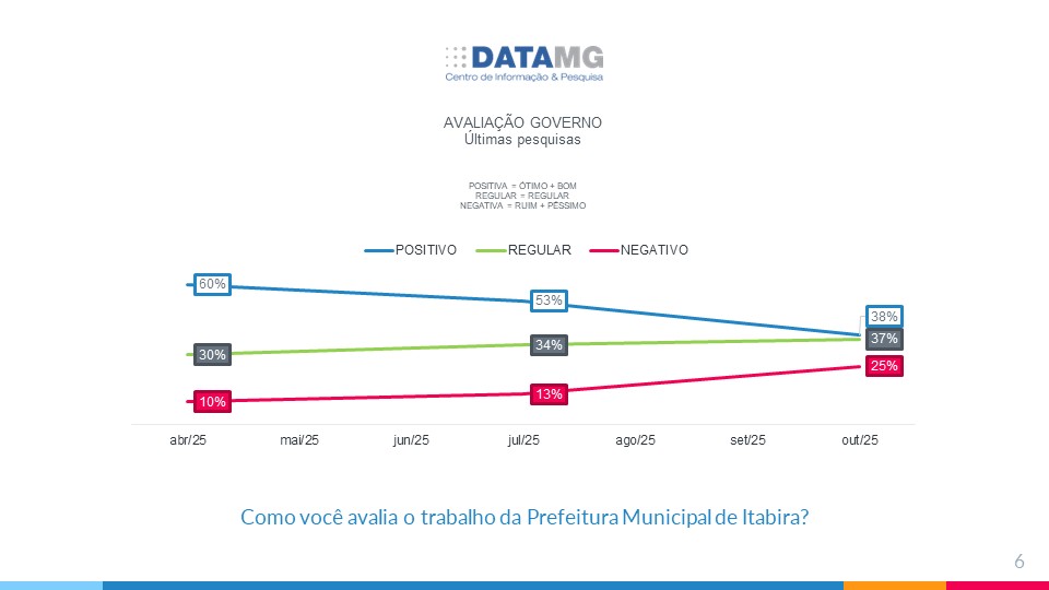 A série histórica das pesquisas DataMG aponta um movimento consistente de queda na avaliação positiva do governo ao longo de 2025: