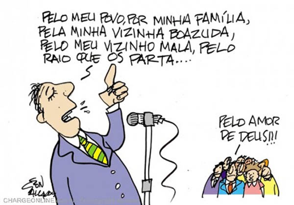 Talvez pensando que o “santo” lhe entregue seja o mesmo que está no caixão sendo velado, florido e chorado, dirige-lhe palavras de afeto e, elogiosamente exageradas. Diz, em sua retumbante oratória, que o fulano de tal, cita o nome que está no “santinho” (aí dana-se tudo) sempre foi “bom pai de família, bom marido, cidadão dedicado à sociedade etc. e tal”.