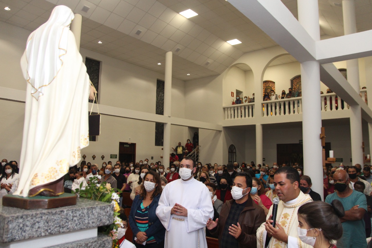 As comemorações da festa da padroeira, no distrito de Senhora do Carmo, deste sábado (16), contaram com um público diverso e participativo. A procissão luminosa levou os fiéis a caminharem da entrada do distrito à Matriz de Nossa Senhora do Carmo, na região central. Em clima de fé e oração, a travessia foi acompanhada pela música da Banda Euterpe Itabirana.